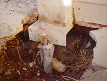 An inside or outside concrete slab that has settled can be saved using this system. The slab is core drilled on approximately 5' centers to allow the installation of a helical pile in conjunction with a galvanized steel channel to support the slab. If possible the slab is then strategically raised and stabilized to its original level. In some cases this can be achieved without having to move out.